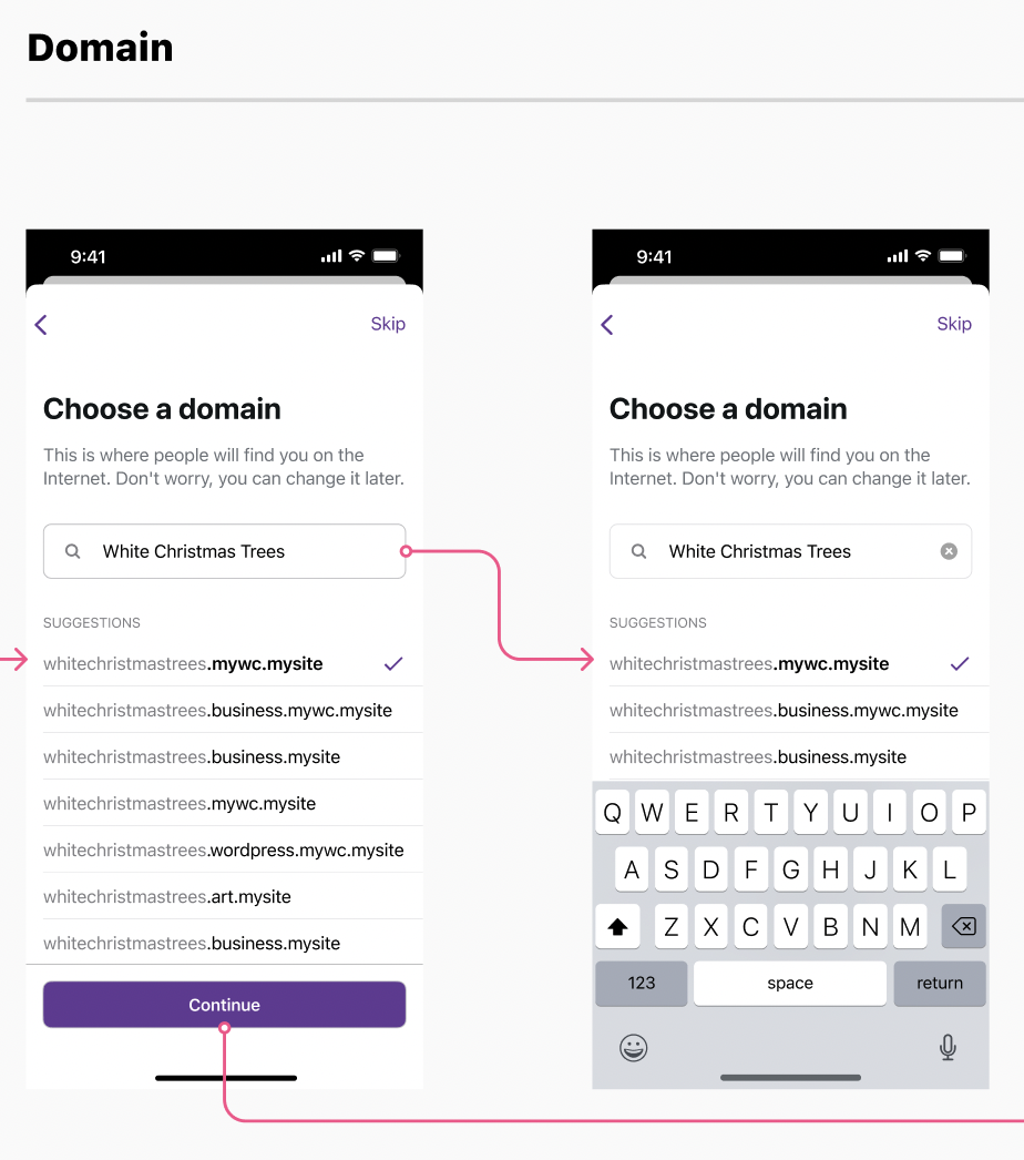 - Auto-dismiss the keyboard after selecting a domain and the continue button appears (ref)