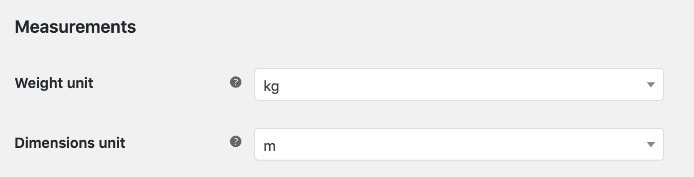 As part of the product detail screen (ref: #764 for WCiOS), @nbradbury astutely pointed out that the dimensions we are receiving from the products API doesn't have units attached to measurements. On the web, the WC settings UI contains these values: