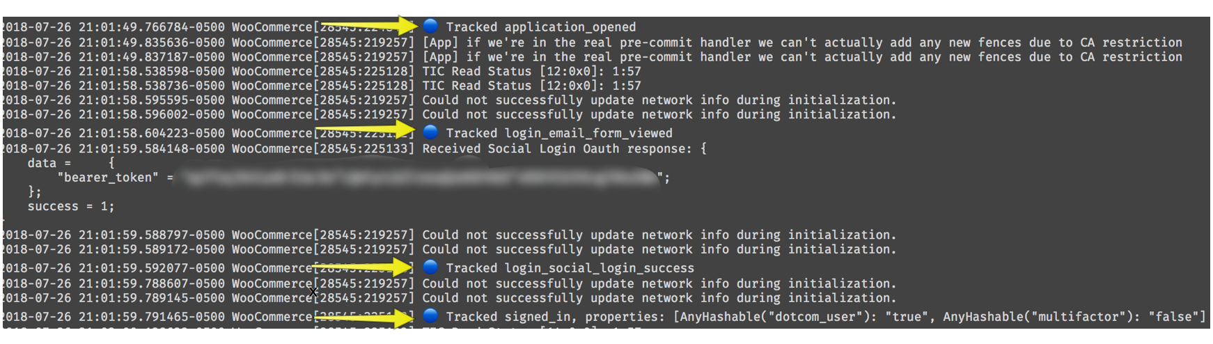./Podsfolder in your local repo and runpod install. Then launch XCode and make sure the app builds and the unit tests are ✅.Next run through the various Authentication flows while verifying that you are seeing logs like: