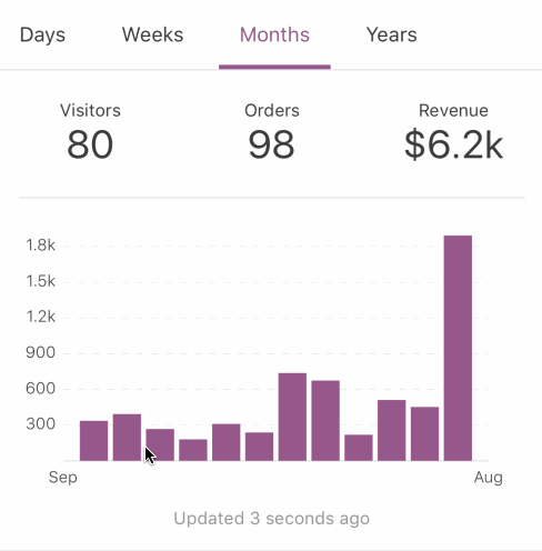 Log into a variety of stores and see if all 4 charts (days, weeks, months, years) look "ok" (as compared to similar data you would see on the web dashboard).