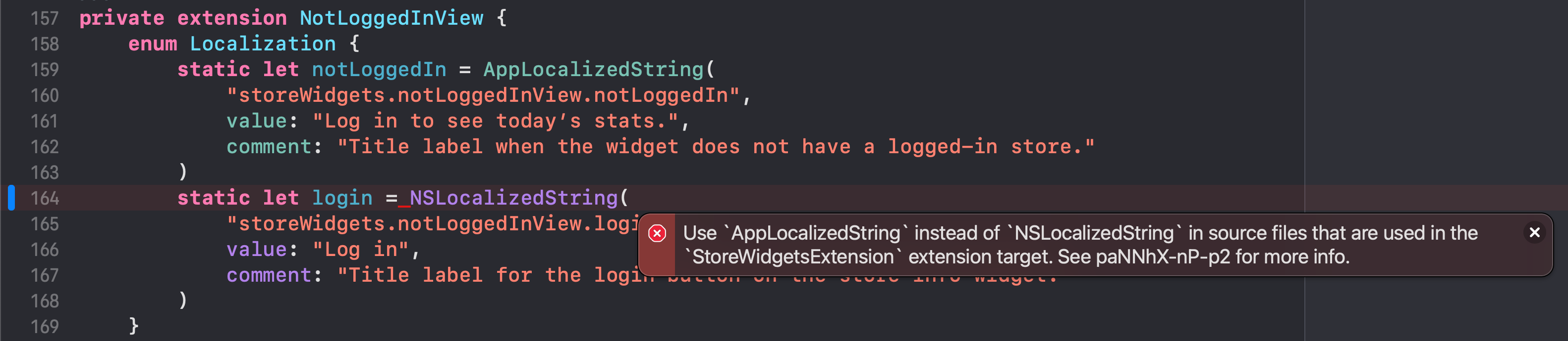 AppLocalizedStringusage toNSLocalizedStringand verified Xcode failed the build with an informative error:RELEASE-NOTES.txtif necessary.