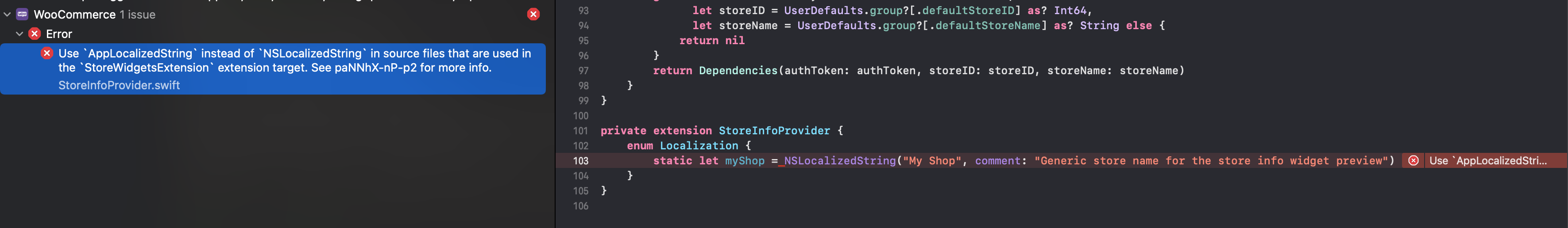| Use `AppLocalizedString` instead of `NSLocalizedString` in source files that are used in the `\(targetName)` extension target. See paNNhX-nP-p2 for more info. | ||