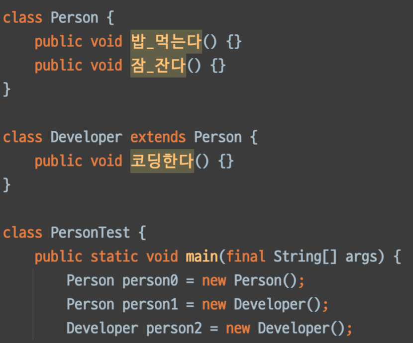 하위 클래스의 인스턴스가 생성될 때 상위 클래스의 인스턴스도 힙 메모리에 생성된다.