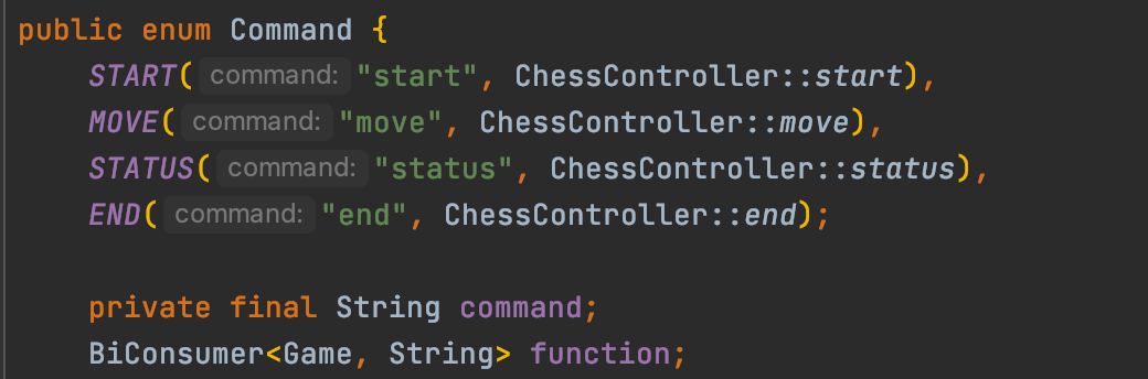 현재 저희 코드는 컨트롤러에서 인풋으로 들어온 문자열을 Command enum 으로 보내서 분석하여 enum의 값으로 있는 함수형 인터페이스 함수를 호출합니다! 이 부분이 모두 컨트롤러에서 이루어지는데, Command 클래스가 domain에 포함 되어야 할 것 같기도 하고,, 그러자니 domain에서 다시 컨트롤러의 함수를 호출하는 격이 되니 어떻게 구현해야할지 고민이 되었어요! 이 부분에 대해서는 어떻게 생각하시나요?