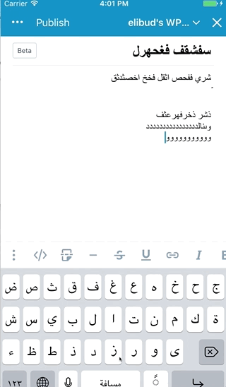 ### Description: We're currently encoding many non-latin characters when switching to HTML mode. ### Details: This issue was created by unifying #298 (Chinese) and #631 (Arabic). This is an example provided by @elibud showing how Arabic characters are encoded when switching to HTML mode:  ### Steps to reproduce the behavior 1. On XCode set the scheme to use pseudo RTL language 2. On the simulator add the Arabic keyboard 3. Create a new post using Aztec, with the Arabic keyboard type some text. 4. Switch to HTML ### Tested on simulator, iOS 10.3, Aztec 1.0.0-beta.8