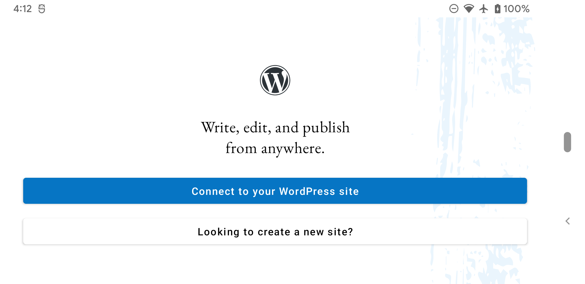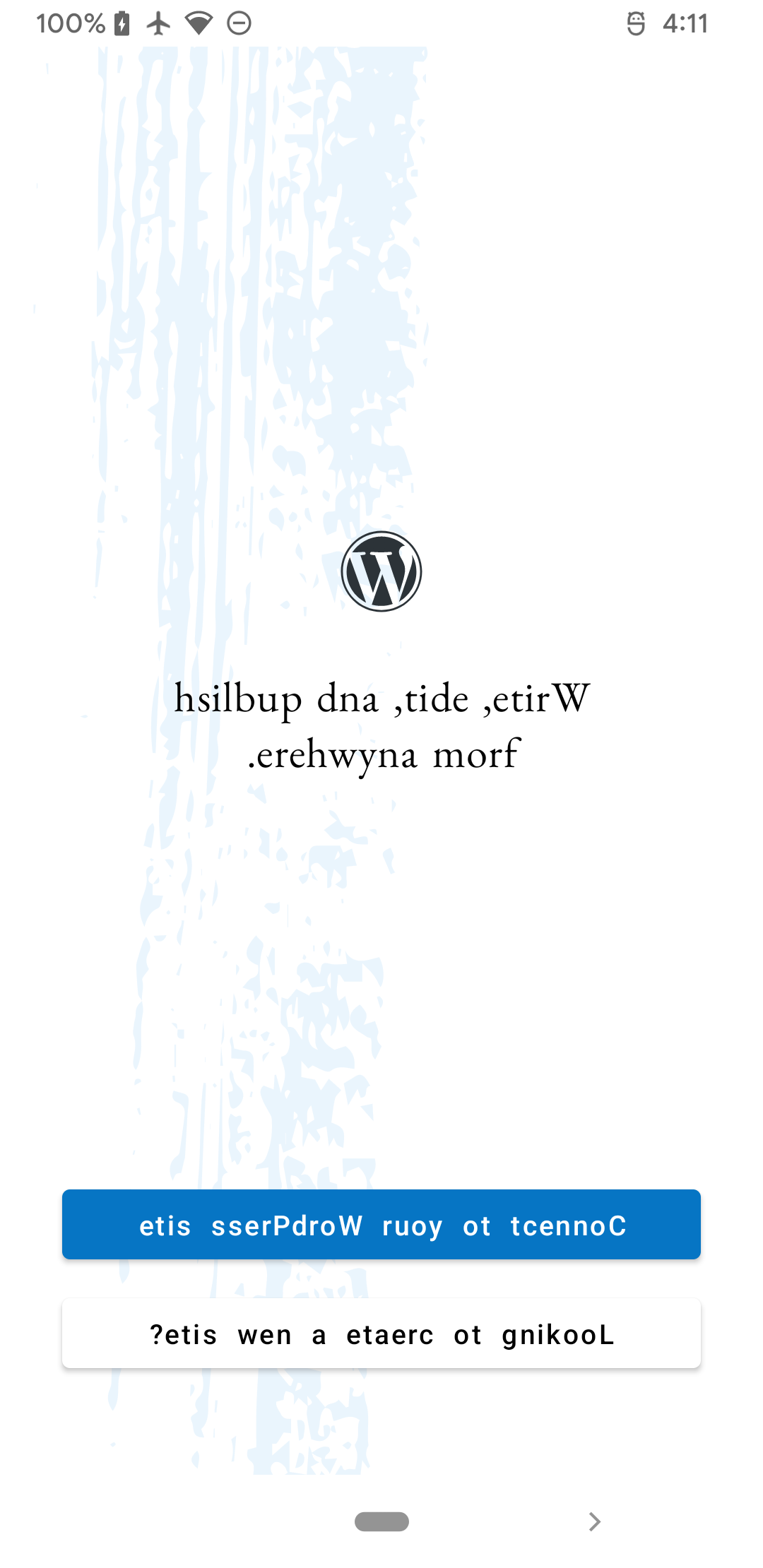 - For some reason, when tapping the back button on the screen that comes after tapping the "Connect to your WordPress site" it gets me out of the app.