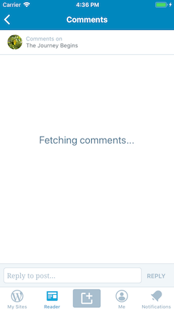 In Reader > Post > Comments, replace `WPNoResultsView` with `NoResultsViewController`. The No Results view displayed when: - there are no post comments - loading post comments - error loading post comments Current views: