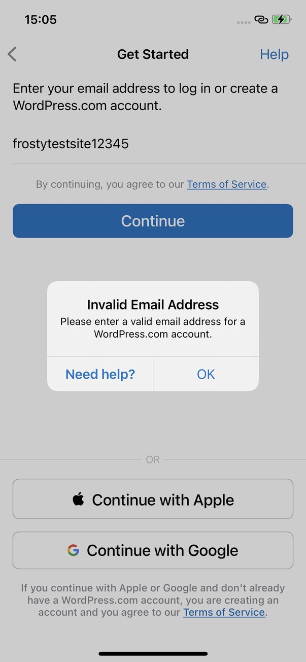 loginFields.usernamefield matches whatever is currently in the email field. This essentially 'resets' any changes made under the hood on the password screen, so the user can have confidence that the UI is correct.2 and 3. The situation in 2 should actually now no longer happen because the email address is correctly validated. However, I've provided a separate error message if we're just validating the form vs validating to request a magic link. I have been unable to find a use case where this happens, as the continue button is disabled if the email isn't valid, but I've included it for completeness: