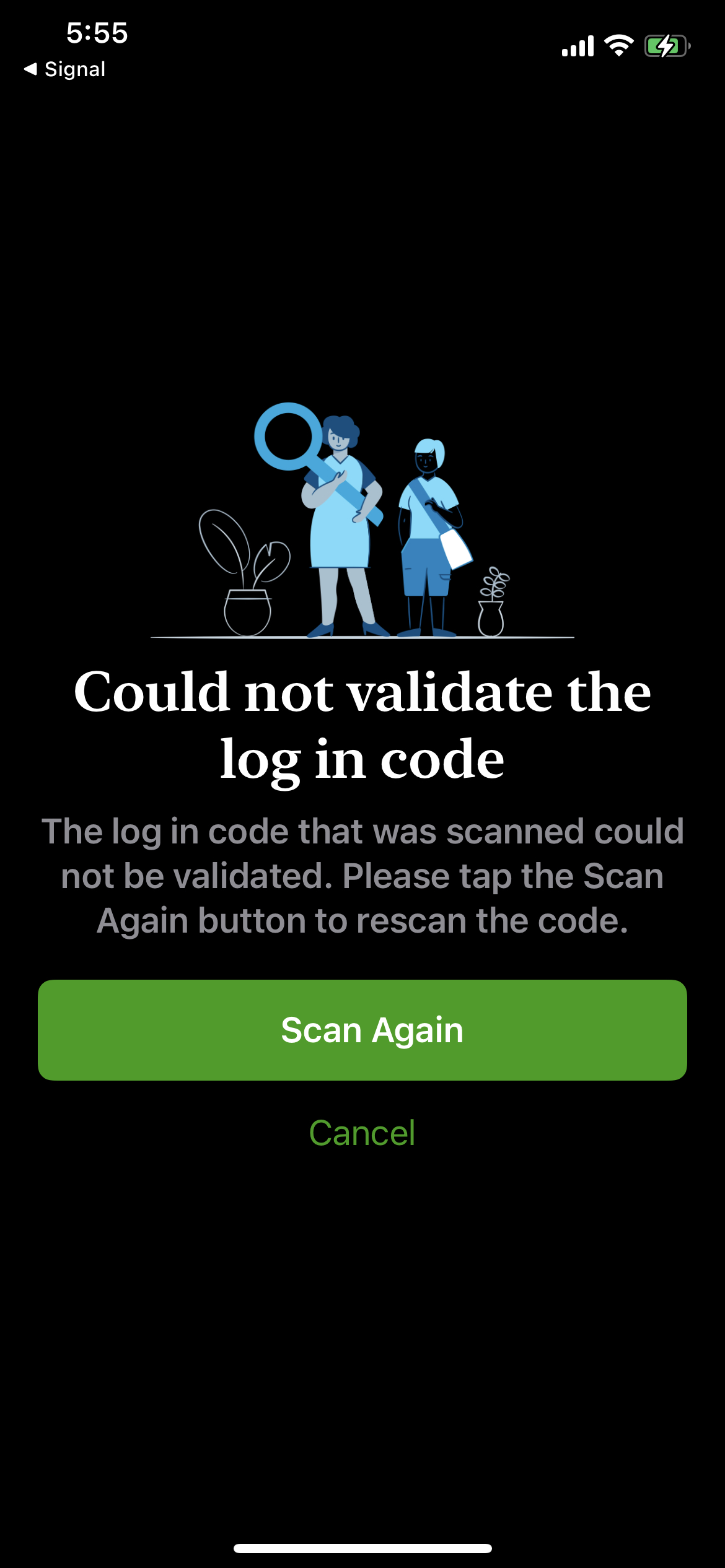 As an aside, I've been getting the following error, but I'm 99.9% sure it's unrelated to the code change:Update The reason was that I was using an A8c account, for which QR code login doesn't work.Error screenshot