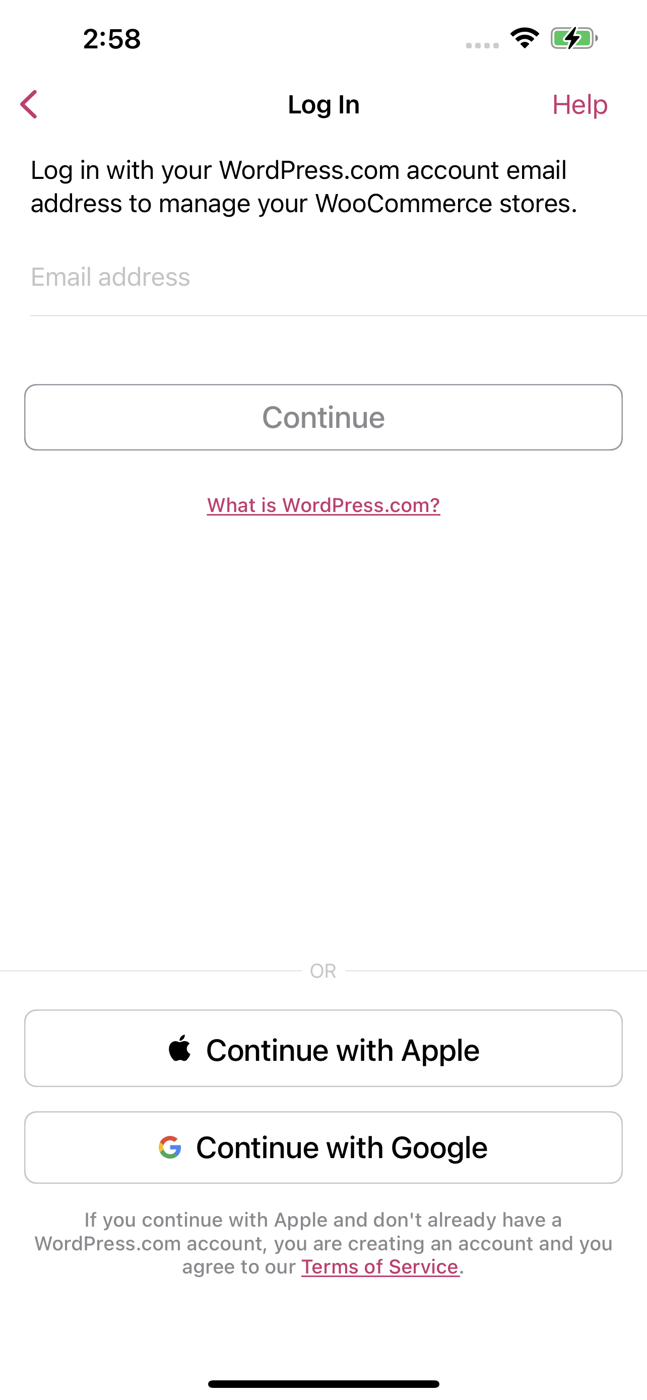 What is WordPress.com?button in the Email entry screen of "Continue with WordPress.com" flow.As we cannot expect all users who install the app to be familiar with "WordPress.com" we are adding this button to teach users about "WordPress.com".