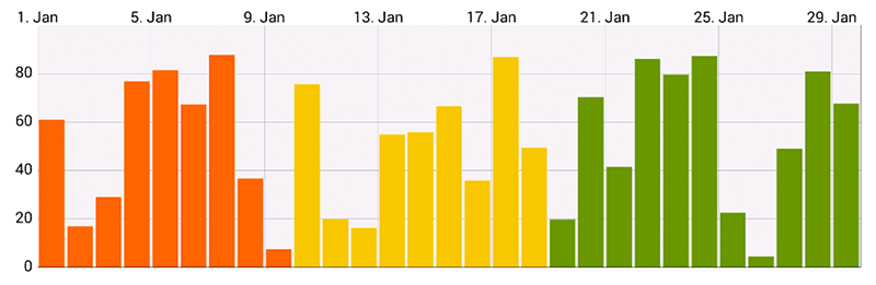 As an example, your chart might display various blood pressure measurement results the user logged with an application. In order to inform the user that a systolic blood pressure of over 140 mmHg is considered to be a health risk, you could add a LimitLine