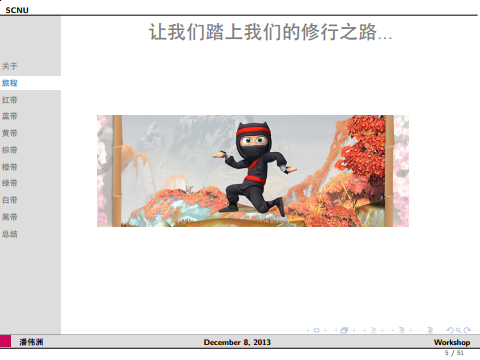 - ANN beamer 模板:一份原创的Beamer模板——Beamer_ANN。最大特色是和 Mindmap 结合取代无趣的 outlines 。
