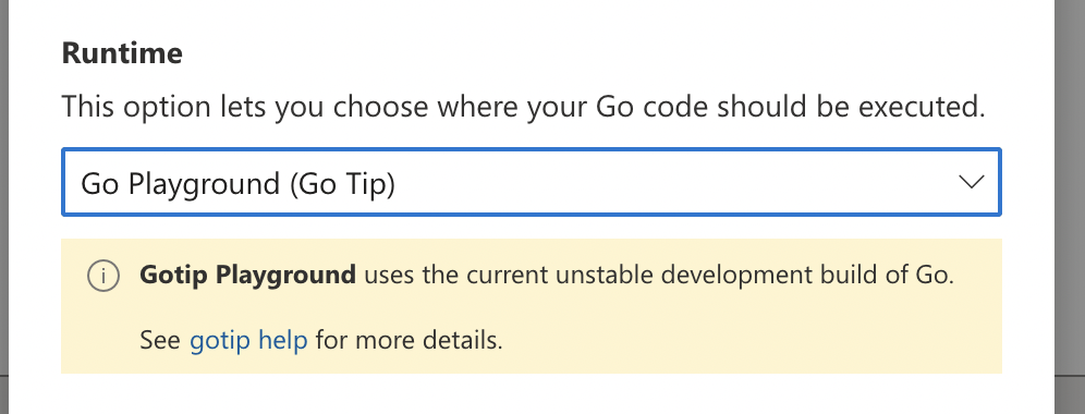 Add support of gotipplay.golang.org backend for running code using experimental Go versions.