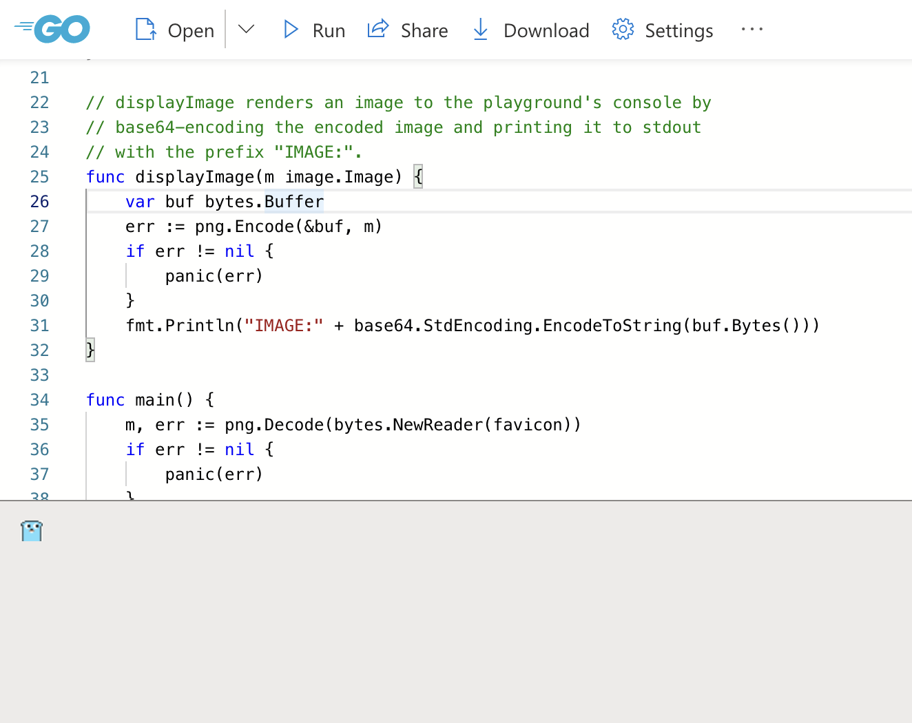 Original Go playground supports image output in base64 format (see https://go.dev/play/p/XN6x3L23Vok).
