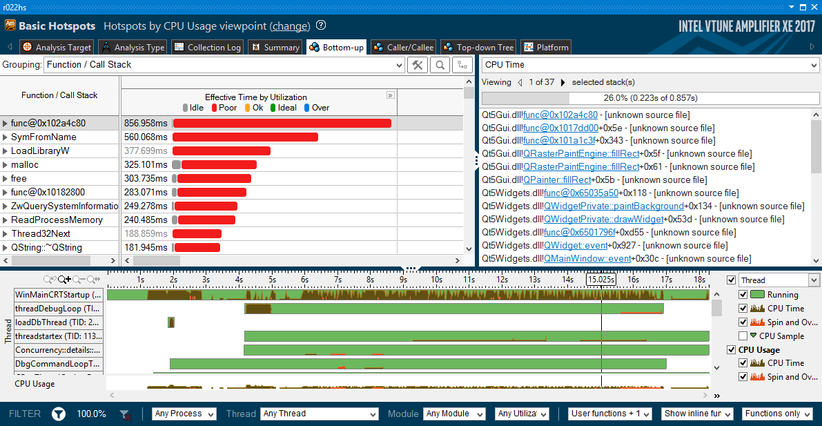 This plugin will hook the GetCharABCWidthsI function in gdi32.dll and cache the results. This is because QWindowsFontEngine::getGlyphBearings doesn't cache internally. A post with more details has been posted on the x64dbg blog.