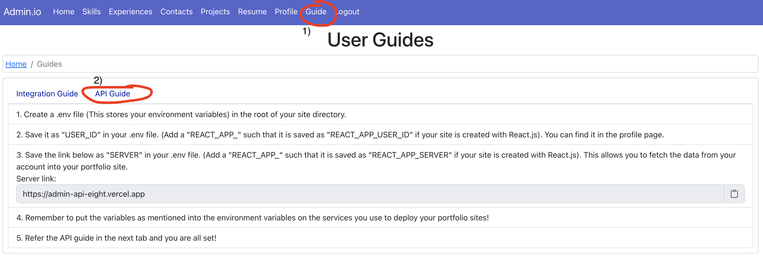 1. Sign up for an account as shown below: (go to https://user-portfolio-admin-interface.netlify.app/)