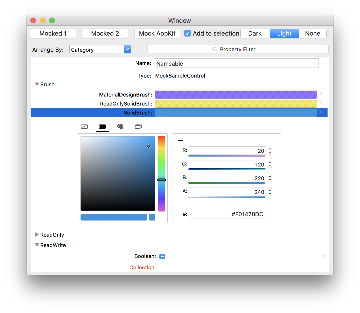 Selecting "Resource" in the property dropdown for the material design brush in the standalone causes a missins method exception in |