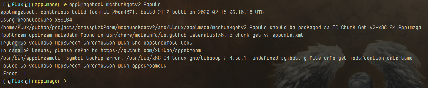 appstreamcliwhen using theappimagetooltrying to compile my project.Error: