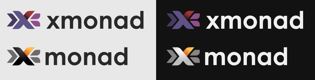 EDIT: Based on Feedback from friends I updated the logo's I will submit. While everyone seemed to like the curved wide best it was just too wide - so I made the side pieces smaller. Feel like those are not the variations I should have commited on or have other feedback? Let me know, I'm open to suggestions :) Original PostI expanded on the idea of @slotThe and tried to give it a professional look. For the color scheme I tried out 3 different variations: Haskell colors, xmonad classic colors and x11 colors. I ended up enjoying the classic colors with the angular look and the haskell colors with the curvy look the best. The latter has a playful yet professional look. Suggestions are welcome!