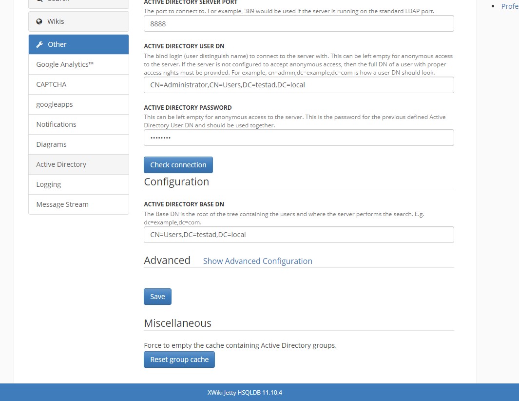 As #22 was fixed, it seems that the "Check connection" also works as a Save button now, even for the changes done under the Show Advanced Configuration section.