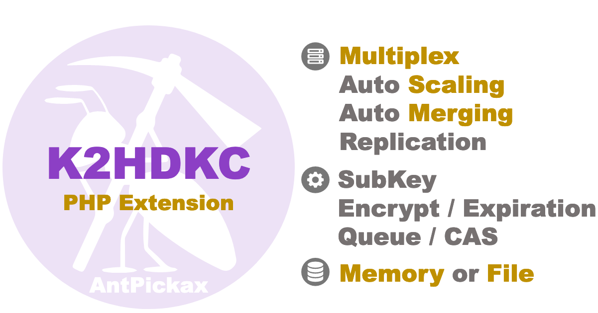 K2HDKC is a free and open-source distributed KVS(Key Value Store) clustering system created in Yahoo! JAPAN. This PHP Extension library is for using K2HDKC from PHP.