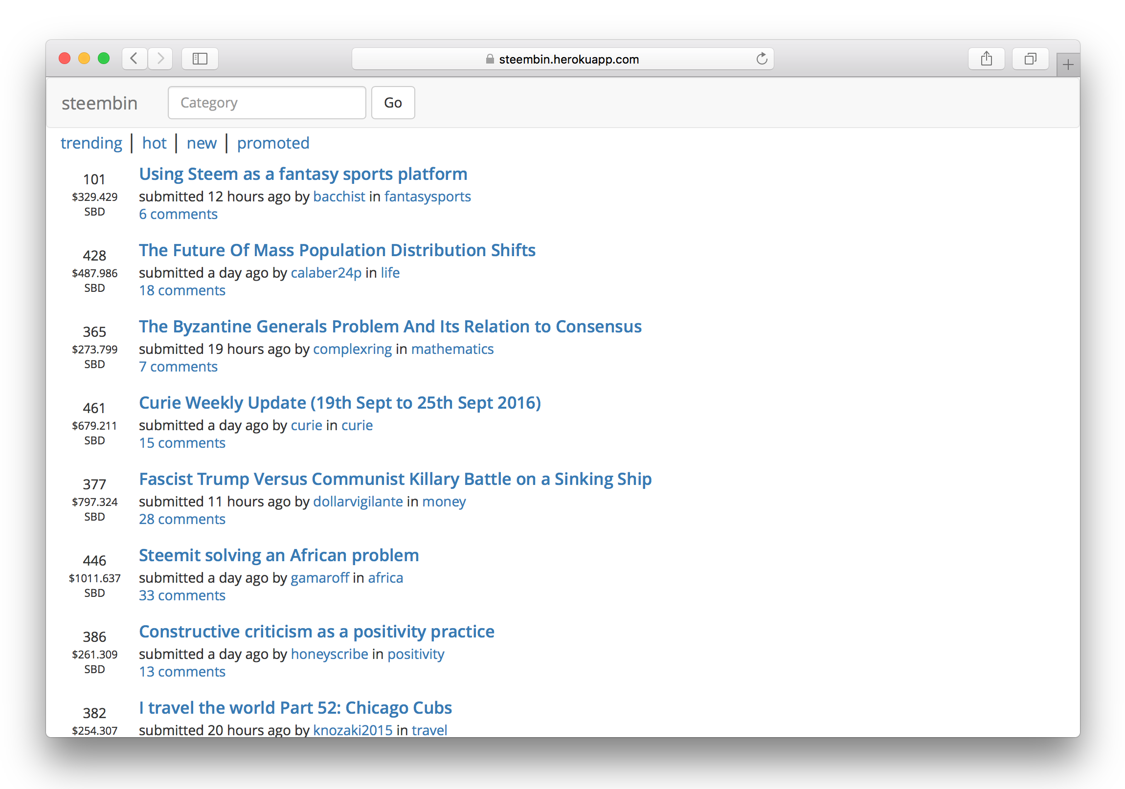 Check a webpage test here, comparing steembin on Heroku's free tier against steemit.com's current React.js front-end.