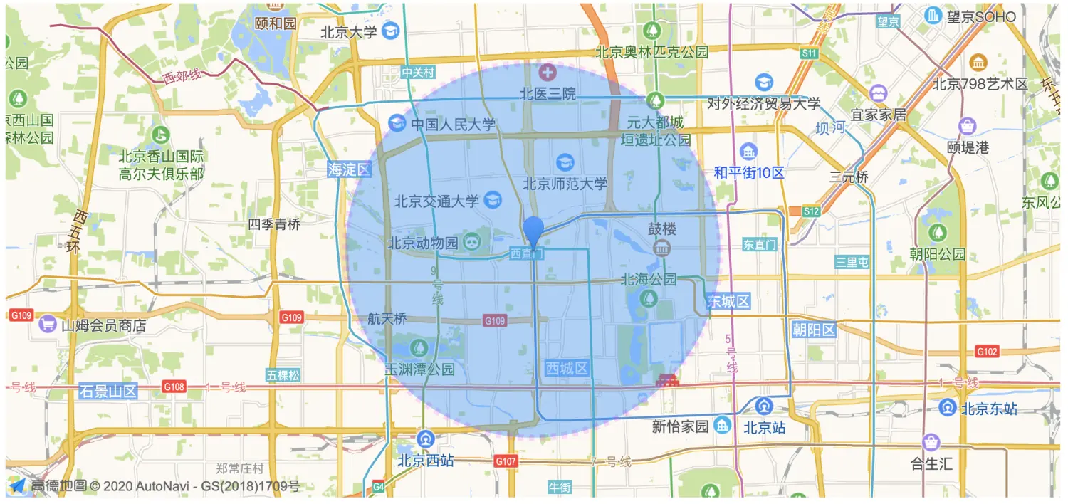高德地图自带的,根据用户输入的地址,进行模糊搜索,用户进行选择定位,根据用户输入的半径进行范围限定