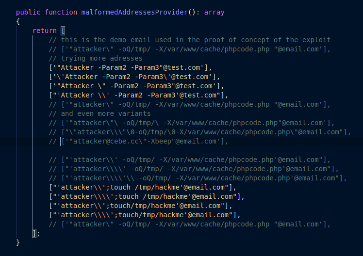 @samdark Yep, the problem is with this emails: I commeted the email with problems in the test. Any idea why this email passed the filter_var? Thanks |