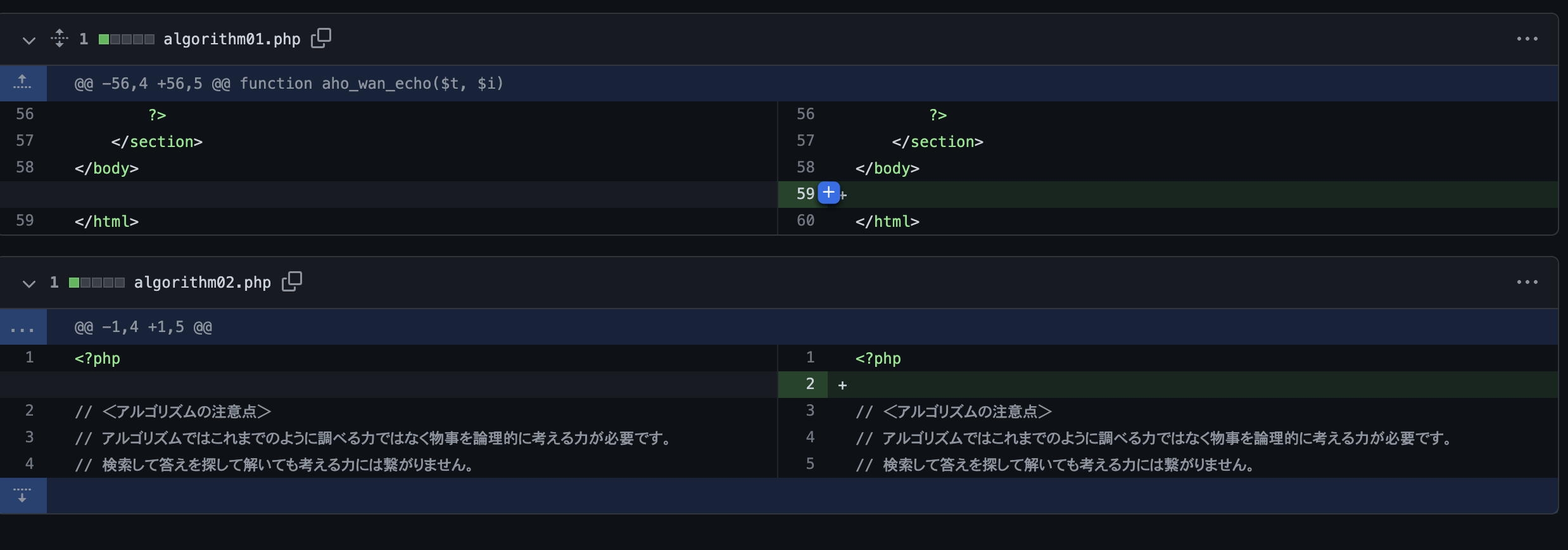 03_php_algorithm lesson01 ~ 0203_php_algorithm lesson01 ~ 02 やった事/レビュー観点03_php_algorithm lesson01 ~ 02 解答 レビュー頂きありがとうございます。 GitHubの件、解説して頂きありがとうございます。 |