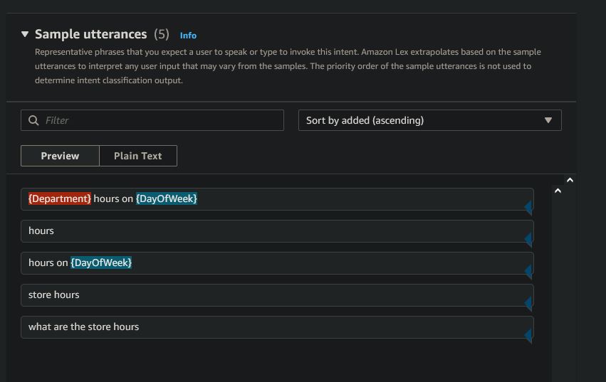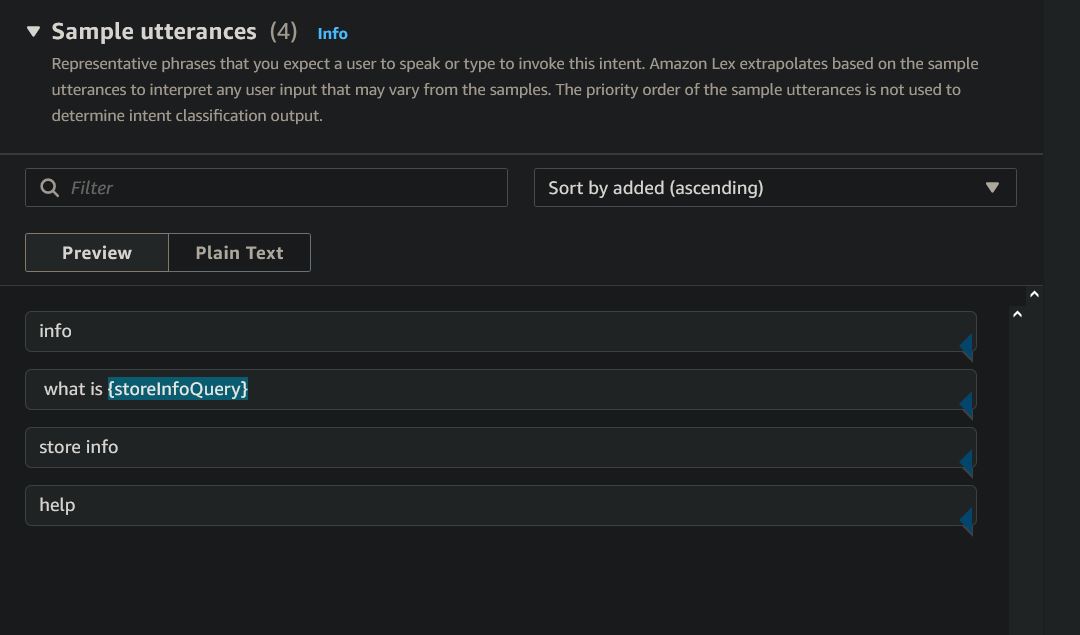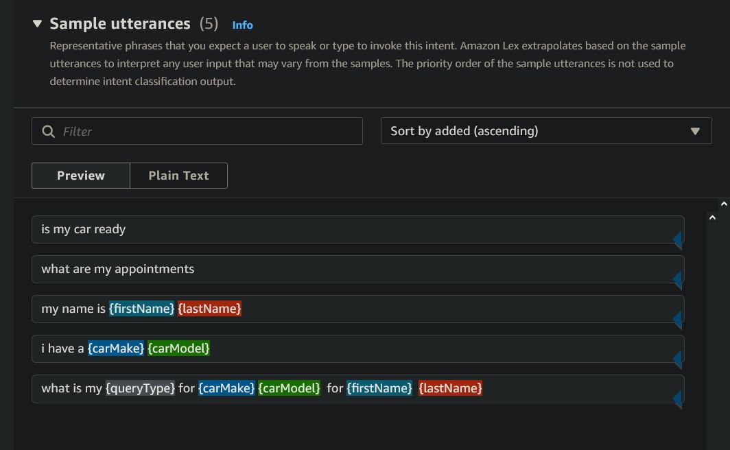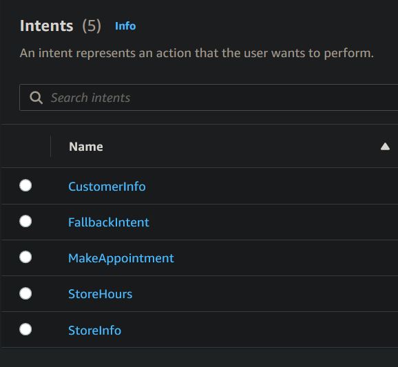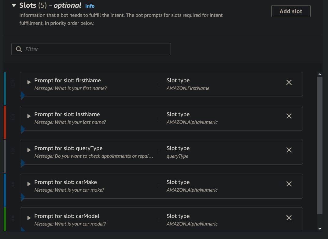 These are all the intents used with this project. All slots used are required