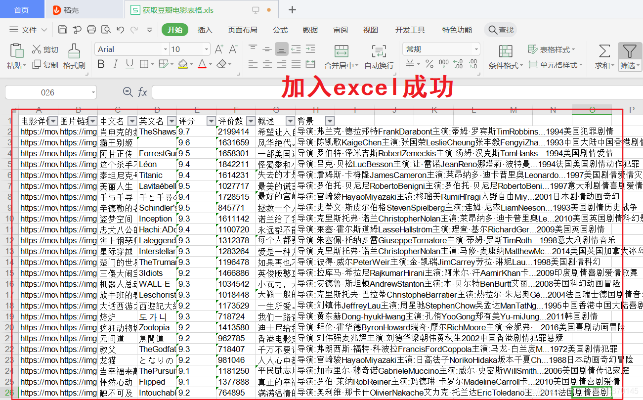 col=["电影详情链接","图片链接","中文名","英文名","评分",'评价数',"概述","背景"]