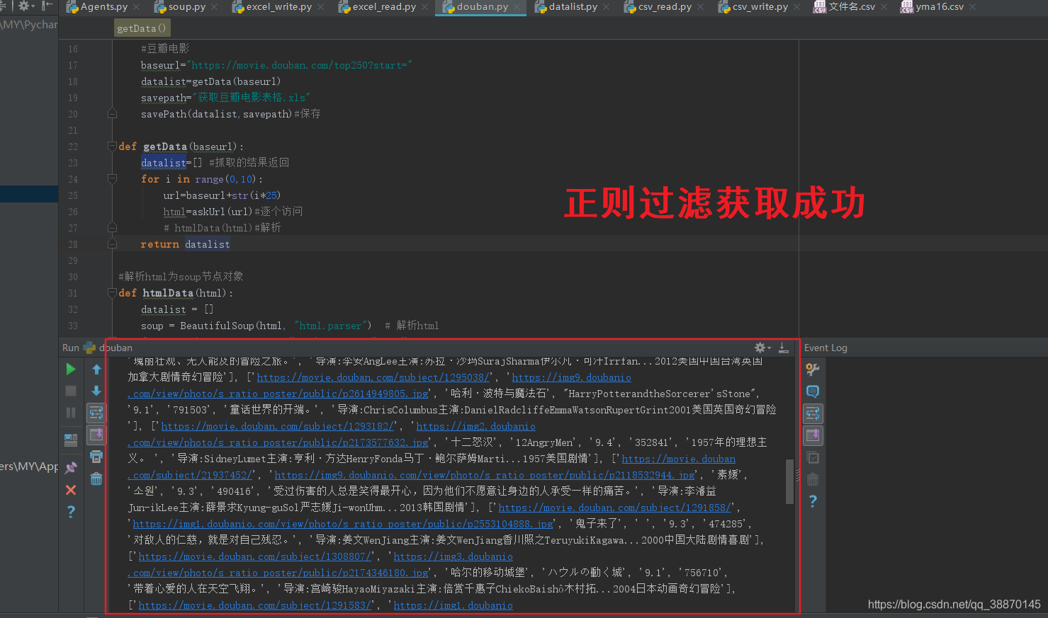 模仿request请求去访问网页,避免让服务器知道时python脚本写的,重写user-agent,得到html的页面代码,使用BeauSoup把html的标签信息转换为python节点对象,对想要的信息转换为字符串使用正则表达式提取想要的信息,最后使用xlwt写入excel