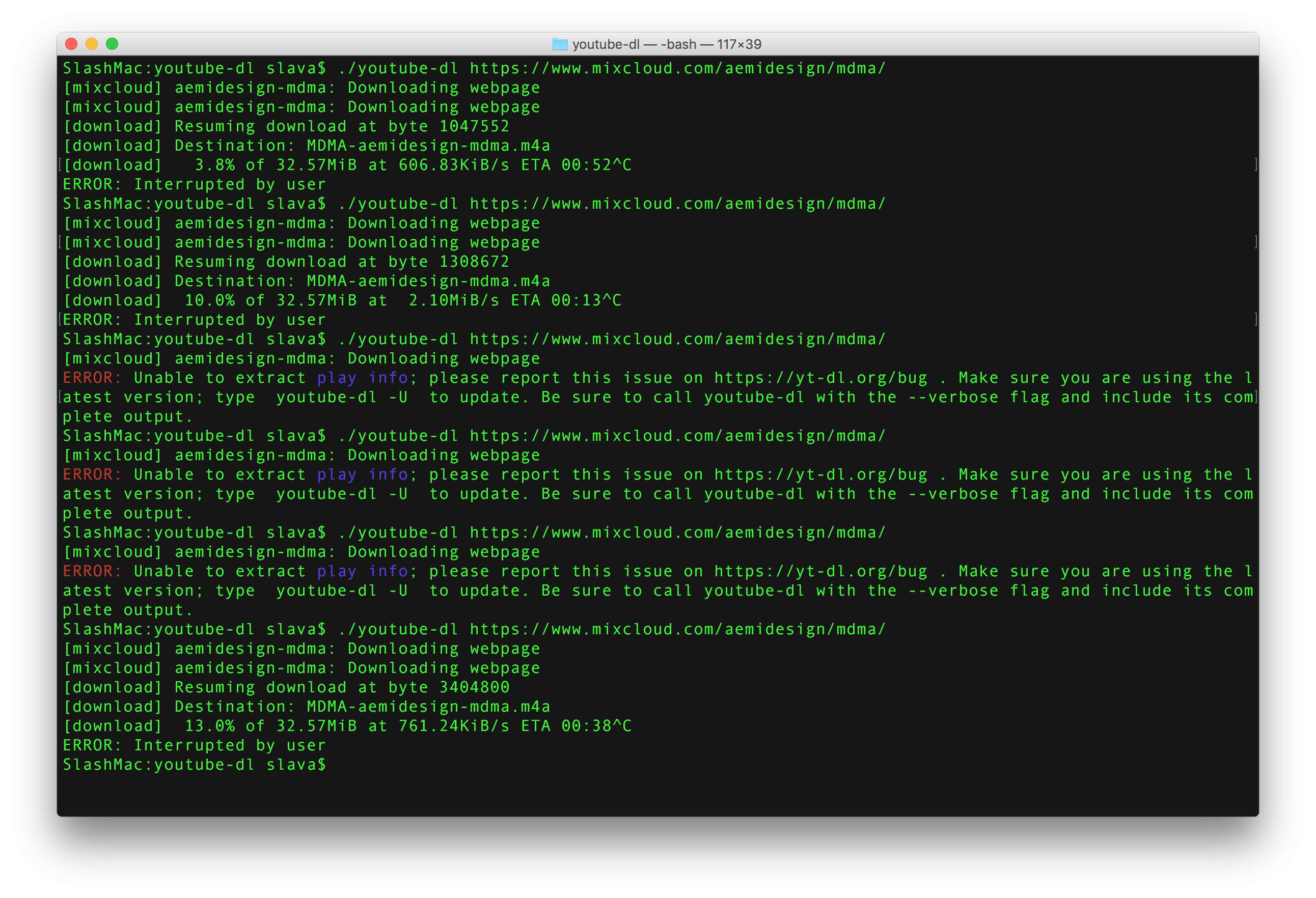 ./youtube-dl -v https://www.mixcloud.com/aemidesign/mdma/