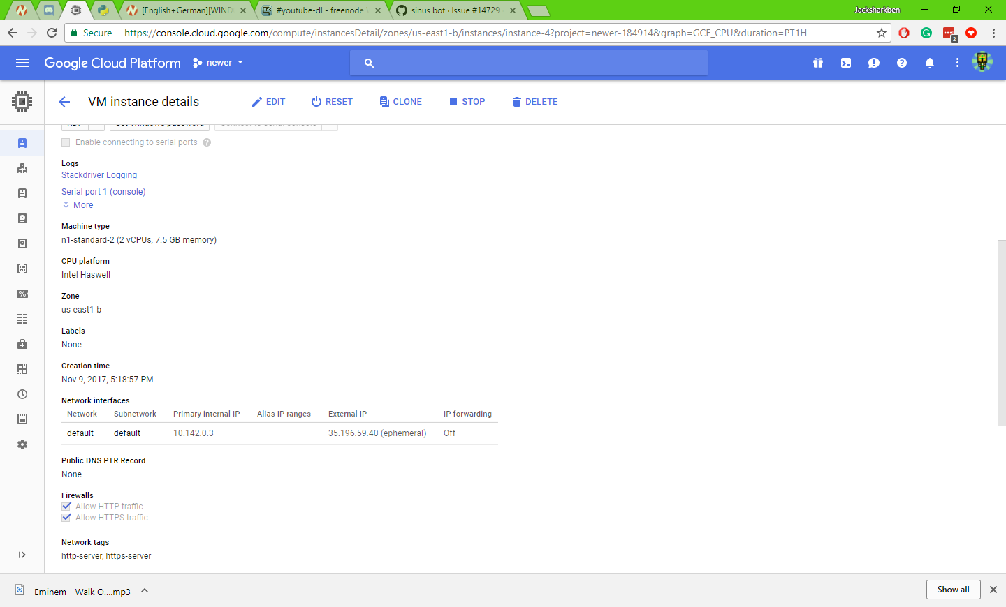 all I want to know is will this work with google cloud. so I can run this music bot with youtube-dl.
