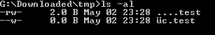 Since I once-upon-a-time reinvented the wheel and wrote I have added a screenshot, because a copy & paste of that properly rendered as The code tests for readability by attempting to fopen() the file for reading... it was written ages ago. The only reason it counted it as "writeable" is because of an even deeper issue (the underlying implementation splintered, created a number of other files instead, and reported writeability on one of them -- I assume). If it matters, the output of chcp is