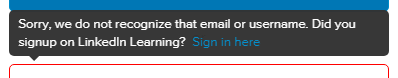 Incorrect credentials. Neither direct login nor linkedin login works with your credentials. |