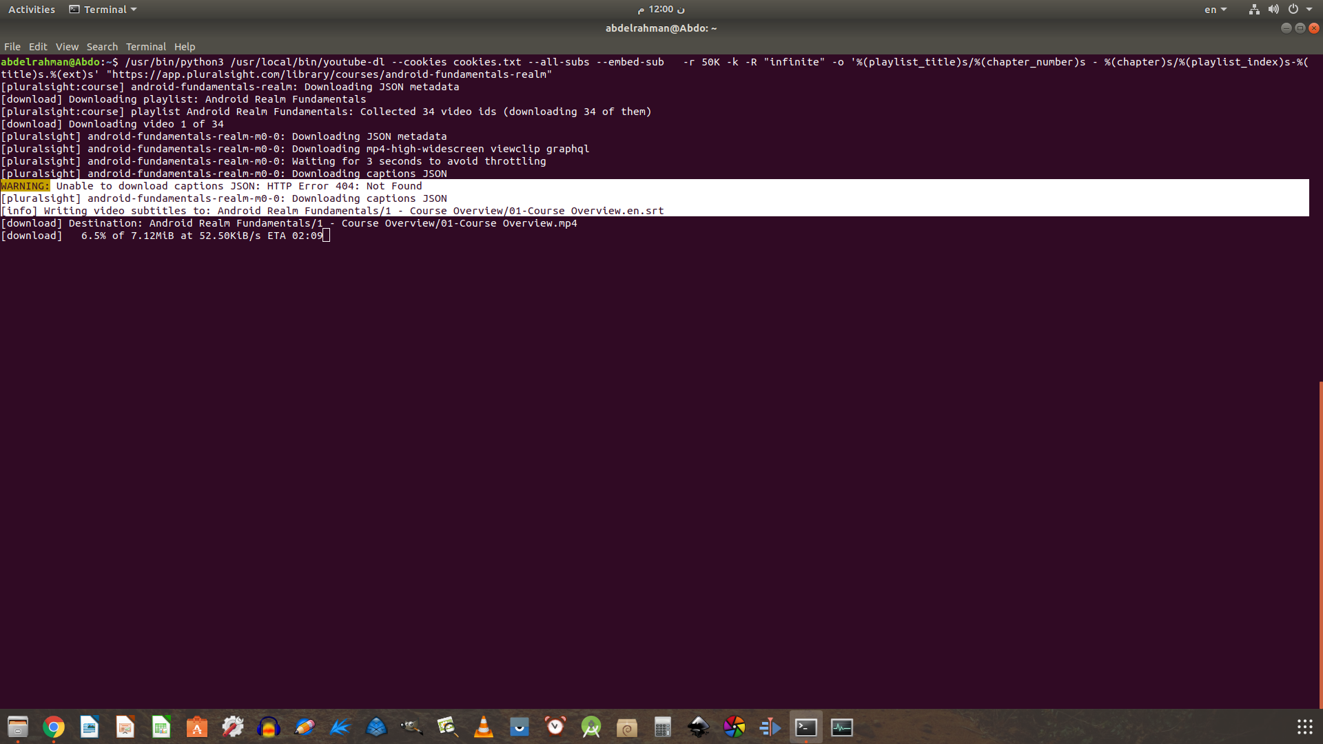 WARNING: Unable to download captions JSON: HTTP Error 404: Not Found