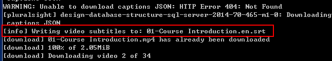 I'm try to download video from PluralSight. Video is ok but subtitle is cannot download. The error is