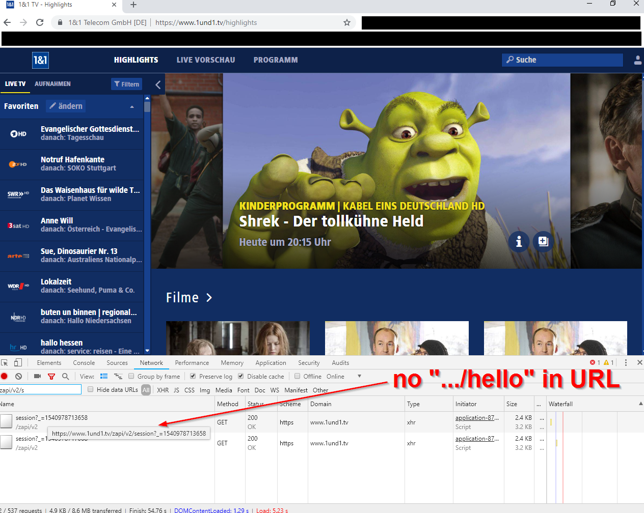 [HOST]/zapi/v2/session/hellois made to initiate a session:This URL path is not correct for 1und1.tv - the