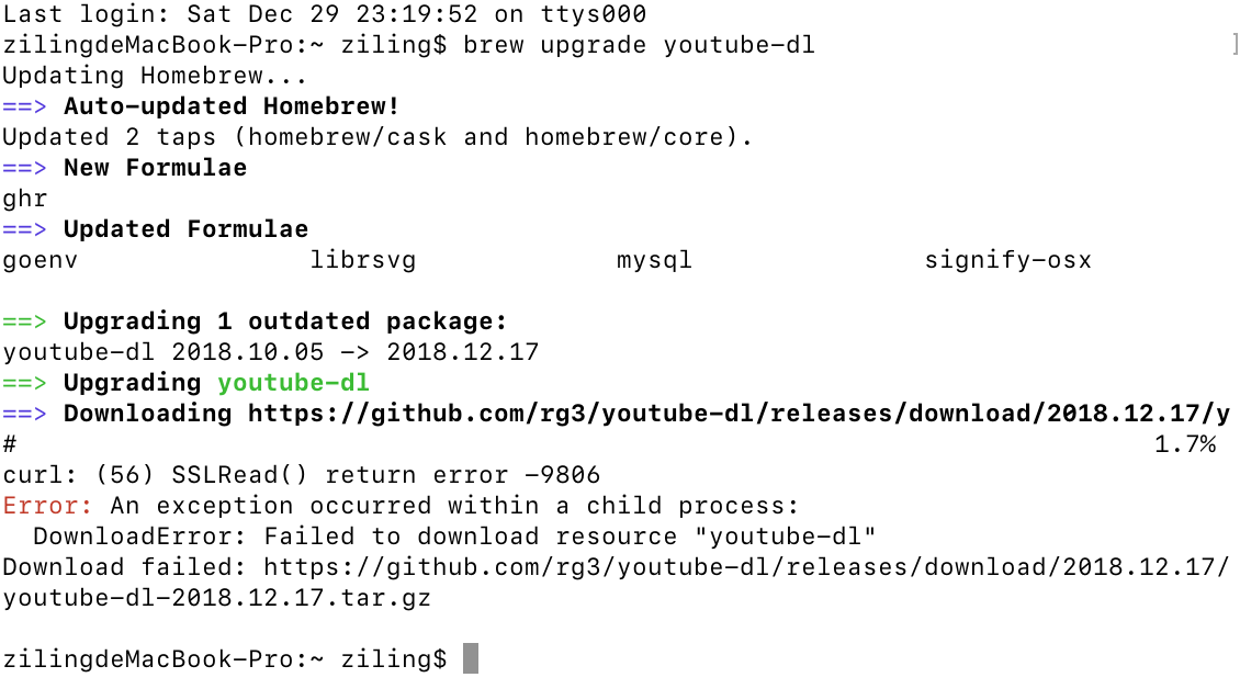 i can't update youtube-dl through homebrew in my mac.i try many times, but it failed.