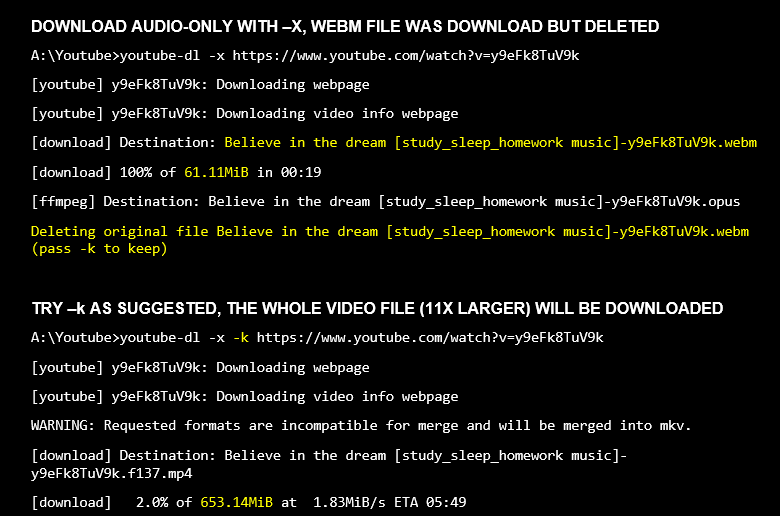 Of course, the application suggest using "-k" to keep that file. But when we use -k, the whole video file (which is 8-10x bigger) would be downloaded.