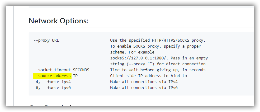 'source-address':source_ip,in my python script but the resulting url from youtube still has my older IP address.What am I missing here?