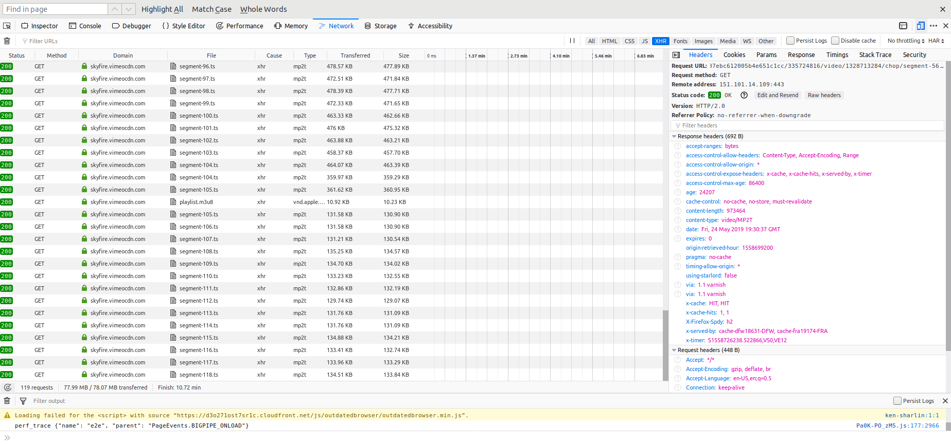 I took a closer look and it seems that these are segmented vimeo videos, which youtube-dl can't download directly. You have to open the (browser) inspector (on the page) go "Network -> XHR", find and click on a "Name" with |