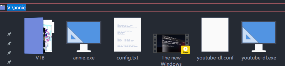 I downloaded the youtube-dl.exe and put it in V:\annie
