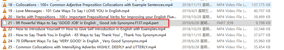 The unfinished video 21 is still a part file: