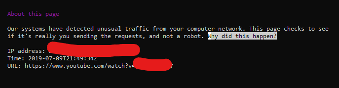 I literally got the same error at the same time as this user. Is this not a coincidence? I barely use youtube-dl on this IP. |