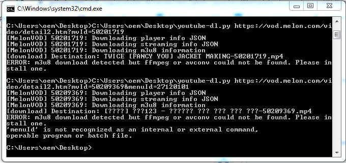 lastly how do i download video and subtitle from vod.melon.com/video? when i try i receive error as shown in attached screenshot (Capture1) while on youtube-dl site it says MelonVOD is supported.