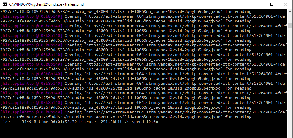 I download different videos from yandex servers. I faced with this issue for 2-3 weeks. Some links were downloaded correctly but some not. Video was downloaded but audio freezes on exact segment each time. However I can download this part in browser. Moreover I can successfully download this video on another computer (and ISP), so I don't know how you can reproduce this.