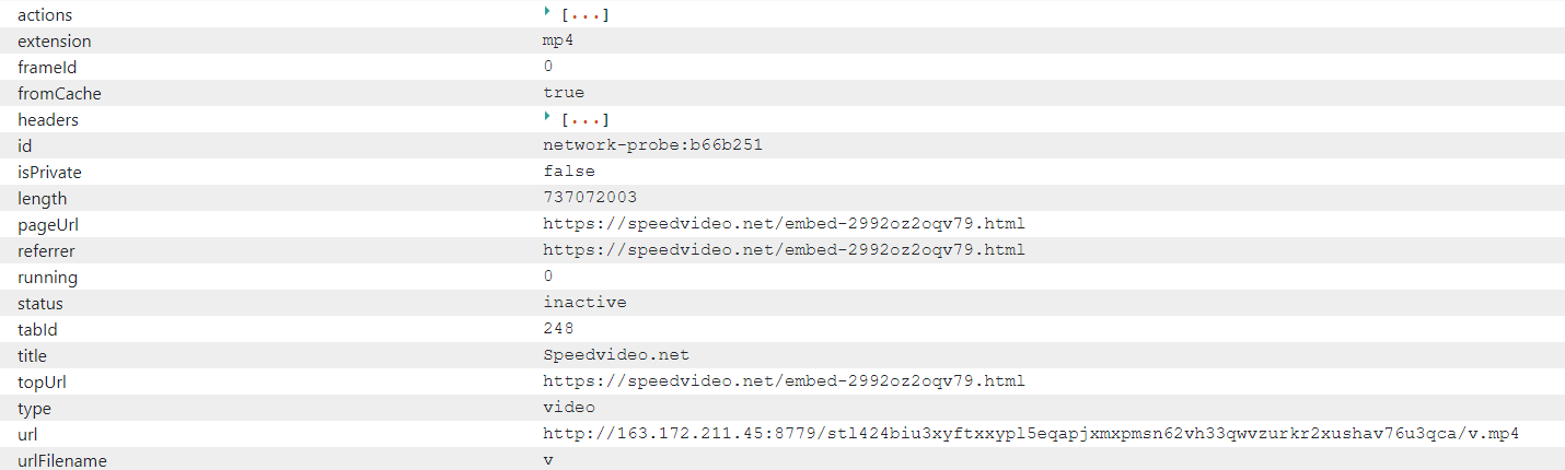 Now, the google chrome browser extension "videoDownloadHelper" can tell me the filesize of the videos: