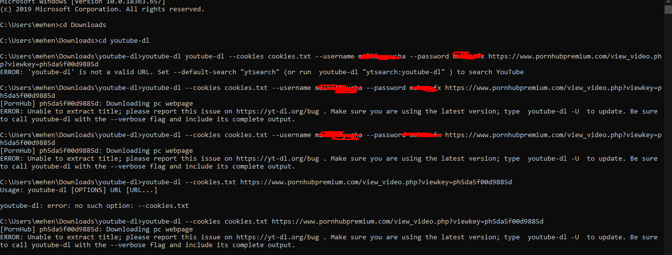 see at top at first i tried with --username and --password |
